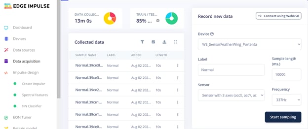 Figure 9:: Collecting sensor data in Edge Impulse (Source: Mouser