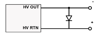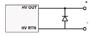 To avoid the problem, designers can use a reverse-biased diode at the high-voltage power supply output to return. The diode must be able to carry the current of the high-voltage supply that has the opposite polarity.