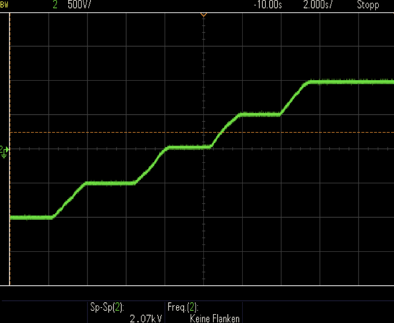 The output voltage of the first module is set to -1kV. The output of a second module can be referenced to this -1kV. The isolated 2kV module is set up in cascade over the module and is controlled from 0 to 2kV.