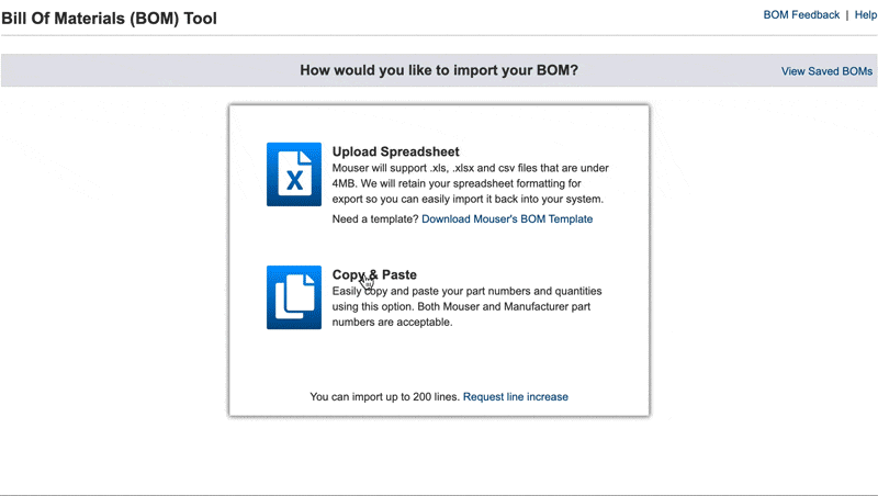 Mousers BOM-verktyg låter dig importera din data på två sätt:
