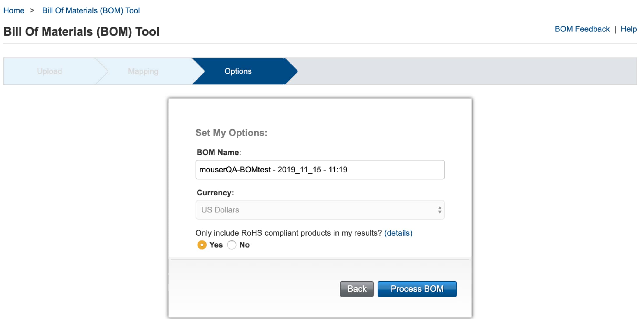 FORTE, Mousers intelligenta BOM-verktyg omvandlar dina importerade BOM-listor till en branschledande plattform för att söka efter delar och göra inköp. Ange egenskaper för hur du vill att din BOM-lista ska bearbetas, såsom valuta, formatering, RoHS-alternativ med mera. Verktyget kommer även att komma ihåg dina egenskaper och kolumnmappning för framtida BOM-listor.