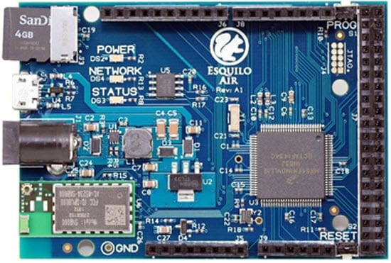 Esquilo Air is a complete IoT development system in the palm of your hand. The Murata SN8000 Wi-Fi Module is built into the Esquilo Air hardware.
