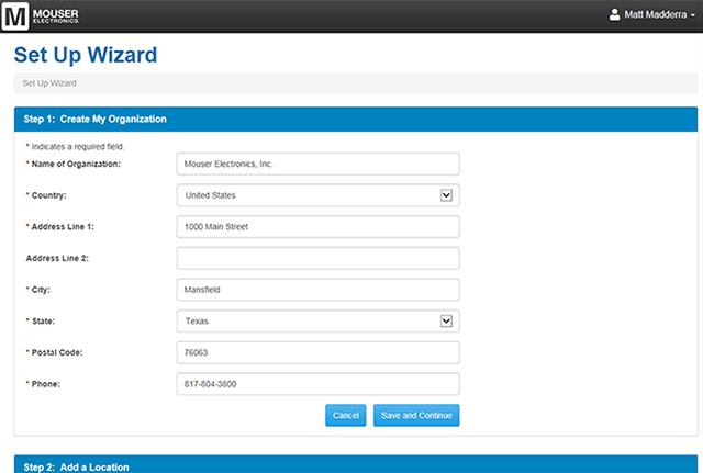 Är du en ny användare och ditt My Mouser-konto inte är kopplat till ett befintligt konto för lagerhantering, omdirigeras du till installationsguiden för nya användare.