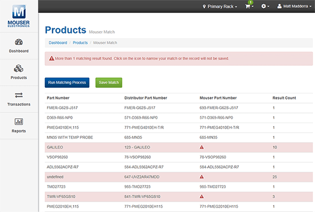 Med funktionen för Mouser-matchning kan du koppla produkter i ditt lager till Mousers artikelnummer. Att göra detta har flera fördelar, inklusive: