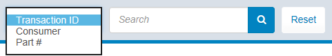 För att göra det enkelt att hitta en viss transaktion, kan du söka efter alla poster med hjälp av transaktions-ID-nummer, konsumentens namn eller artikelnummer. Välj bara dina sökkriterier från rullgardinslistan och ange ditt sökord för att visa alla matchande poster. Du kan rensa dina sökresultat när som helst genom att klicka på knappen "Återställ".