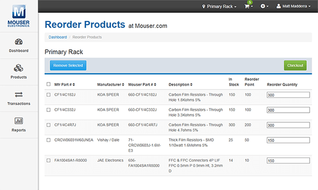 - Möjlighet att återbeställa produkter från Mouser med bara några klick